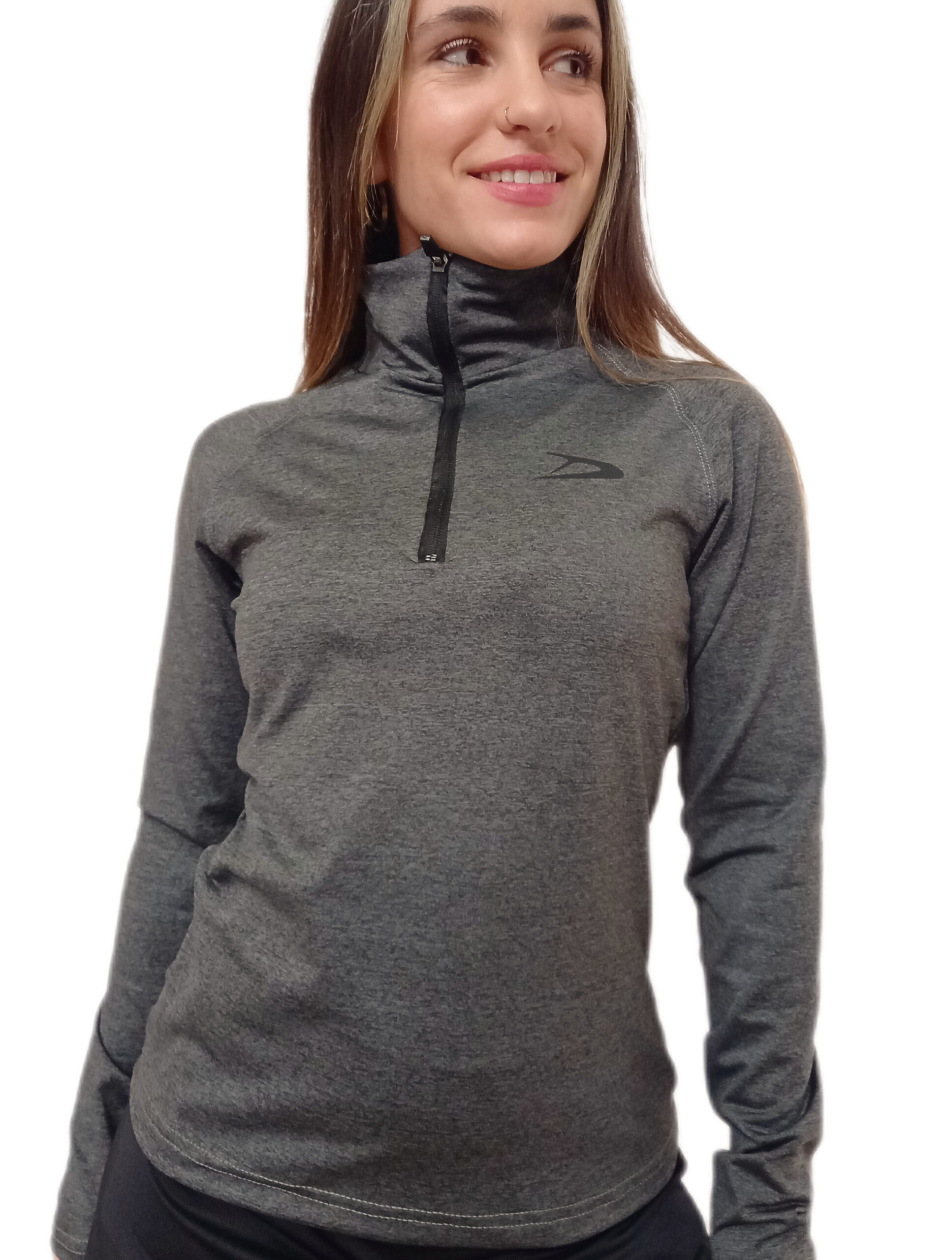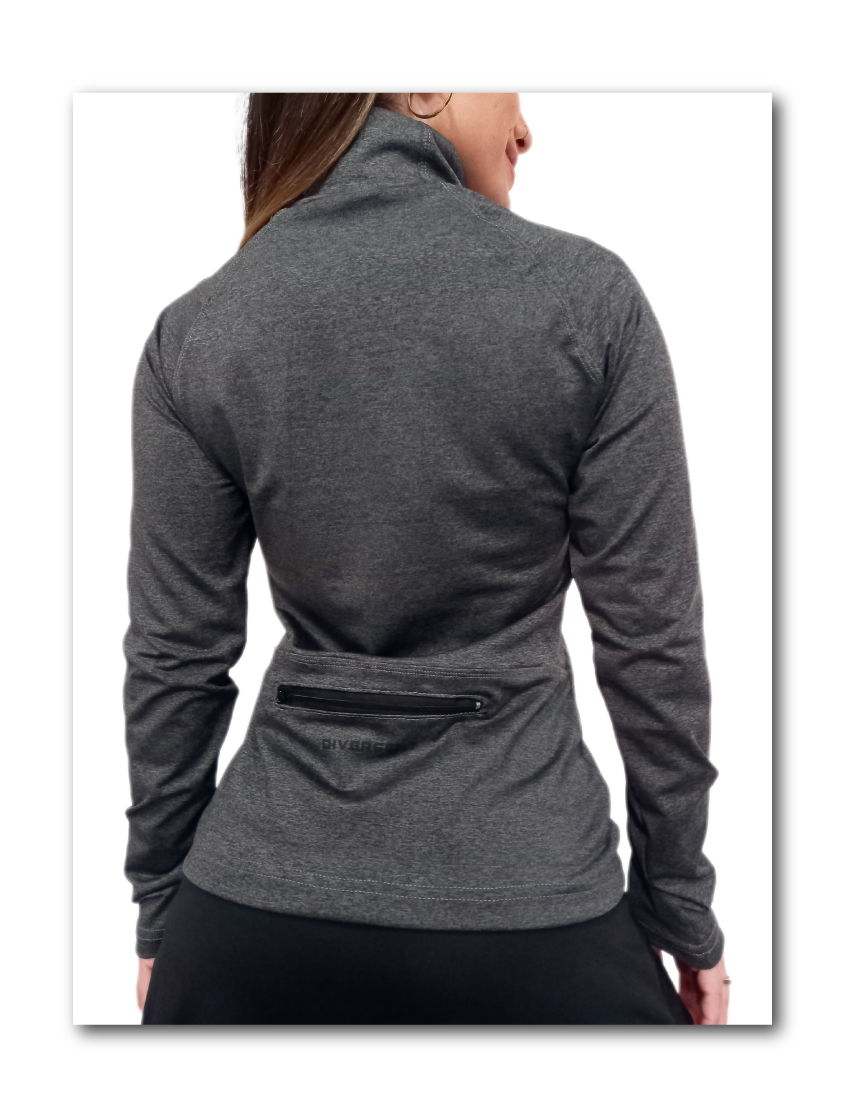Confeccionado en microfibra con Lycra. Con medio cierre en el frente y bolsillo con cierre en espalda.