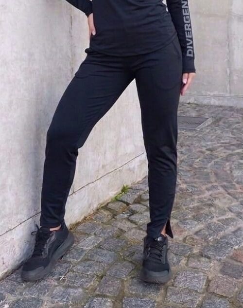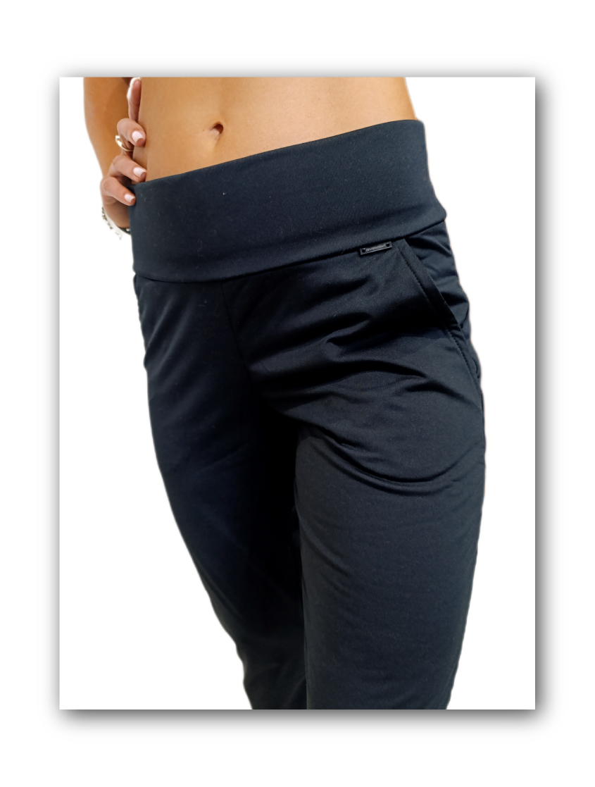 Pantalón chupín térmico con bolsillos, elástico en la cintura y cierre en la botamanga.
