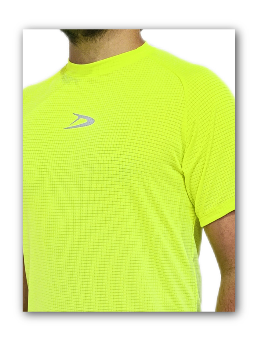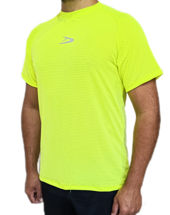 Remera deportiva básica confeccionada en microfibra con lycra desagujada.
