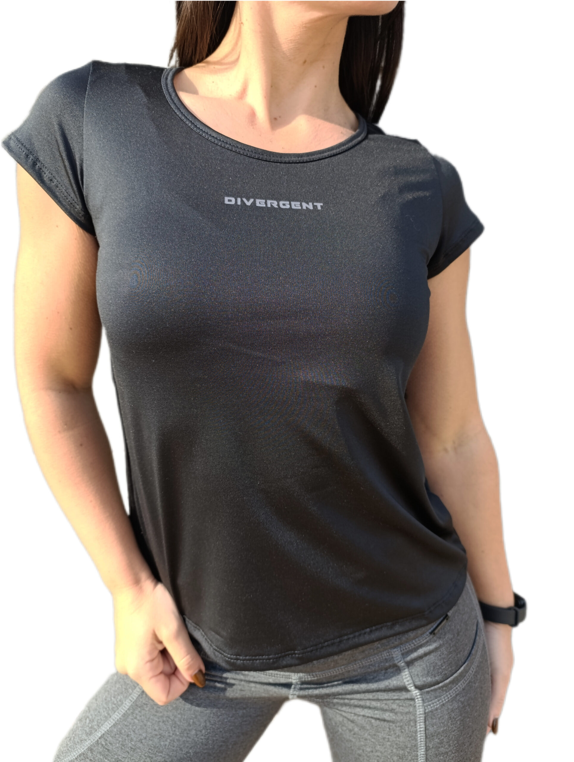 Remera confeccionada en microfibra con lycra negra y vaplex gris con diseño de espalda abbierta.