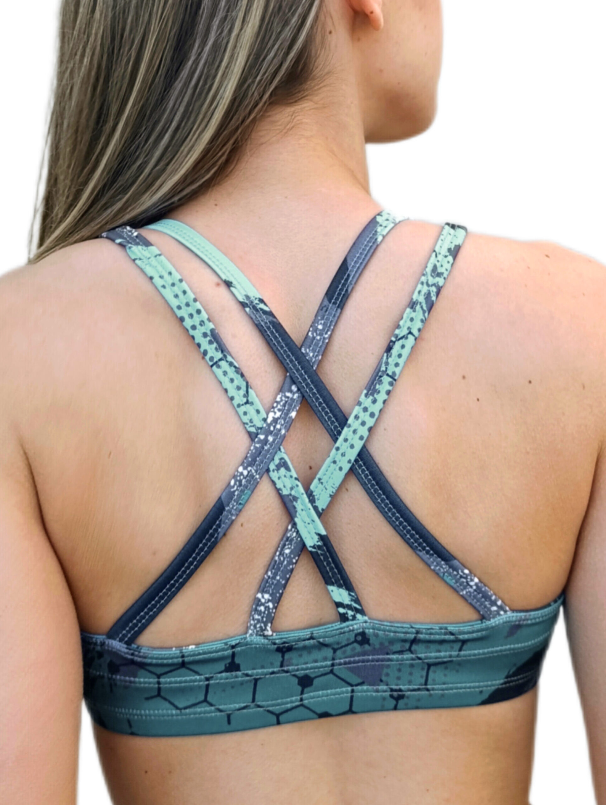 Breteles cruzados en la espalda, forrado con microtull al tono y tazas desmontables